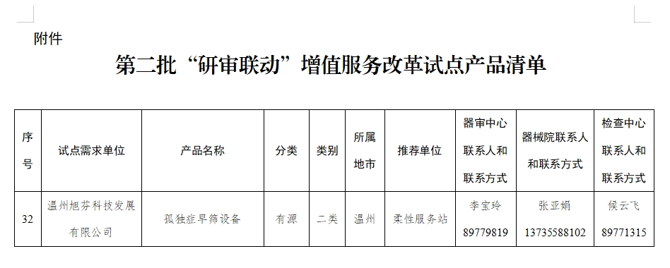 近日,浙江省药品监督管理局公布浙江省第二批“研审联动”增值服务改革试点产品清单,经各市局、各柔性服务站以及省级以上高校、研发机构和医疗机构推荐,并经专家会评审,最终确定第二批试点产品40个,由旭芬科技联合上海大学研究院倾力打造的创新产品——“孤独症早筛设备”,凭借其卓越的技术创新性与巨大的临床价值,成功入选浙江省第二批医疗器械“研审联动”改革试点产品名单。此次全省仅有少数项目获此殊荣,旭芬科技的项目更是作为温州市本批次唯二入选的代表,在彰显产品先进性层面具有重大意义。